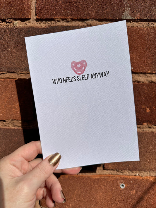 Who Needs Sleep baby card.